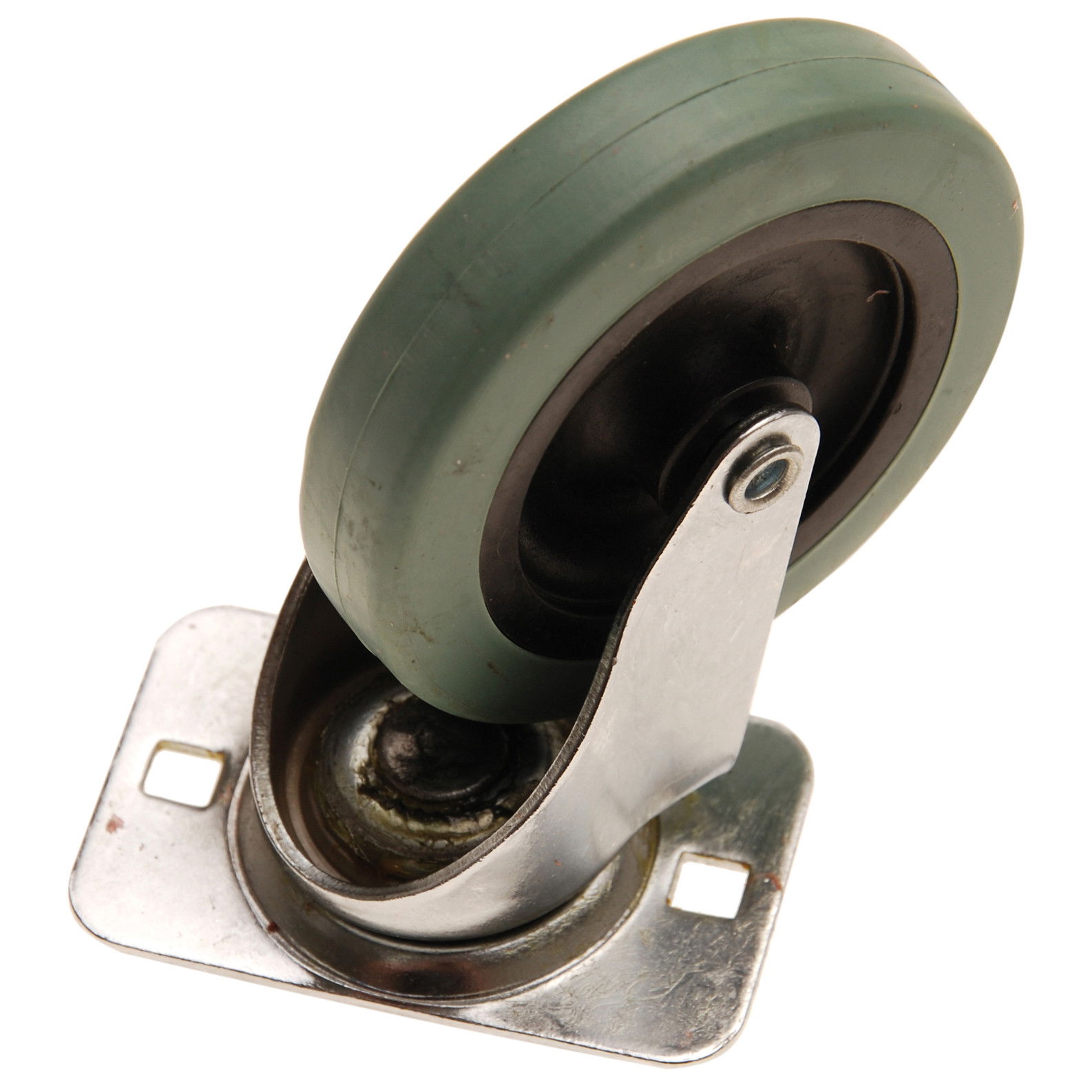 Golyóscsapágyas, forgóvillás talpas görgő, könnyű, gördülékeny kerékkel szerelve.