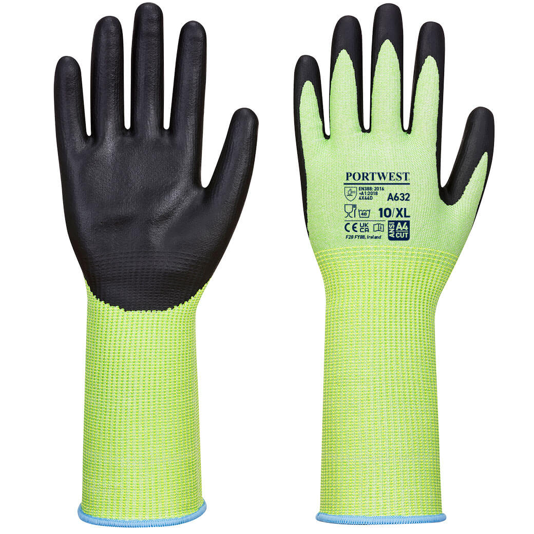 Portwest A632 - Zöld vágásbiztos kesztyű hosszú mandzsettával Cut D, zöld/fekete
