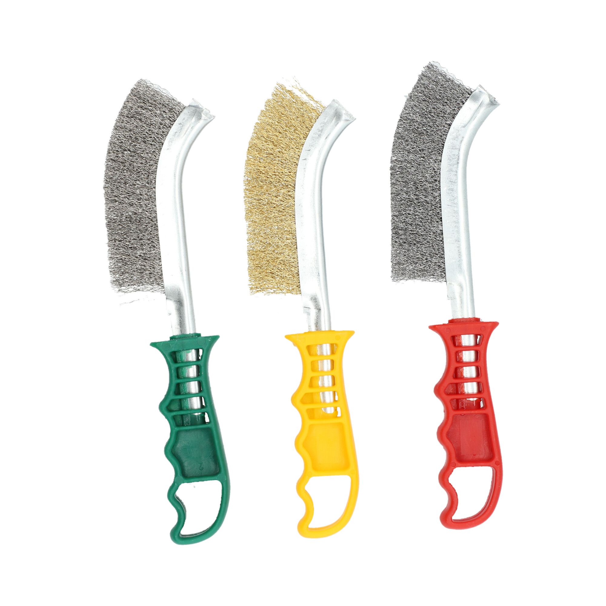 A Norton kézi drótkefe műanyag nyéllel kiváló minőségű termék, amely ideális felületkezeléshez. A drótkefék széles választékával a Norton különféle alkalmazásokhoz kínál megoldásokat, fém és fa tisztításához. Erős drótból készült, amely még intenzív használatot is kibír. A műanyag nyél kényelmesen illeszkedik a kézbe, és precíz és hatékony felületkezelést tesz lehetővé. Akár rozsdát szeretne eltávolítani, akár megtisztítani a hegesztési varratokat, vagy előkészíteni a felületeket festés előtt, ezek a kézi kefék tökéletes választást jelentenek. A sárga kézi kefe sárgaréz huzalból készült színesfém és fa tisztítására. A piros kézi kefe acélhuzalokkal rendelkezik az acél és a fa eltávolításához. A zöld kézi kefe rozsdamentes acélhuzallal rendelkezik a rozsdamentes acél eltávolításához. A válogatott készlet minden ecsetet tartalmaz több alkalmazáshoz.