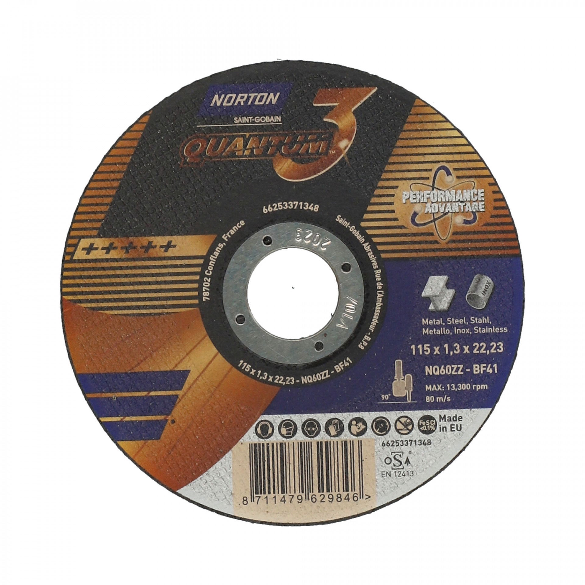 Norton Quantum3 fém-inox vágókorong 115x1,3x22,23mm, 25 db/csomag