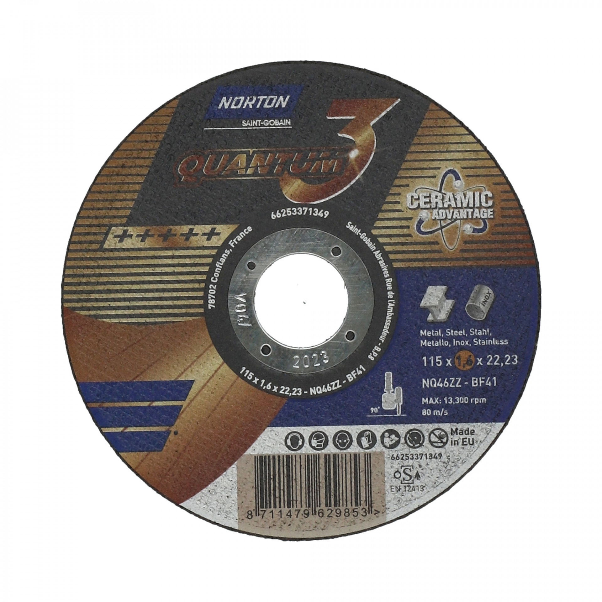 A Norton Quantum fém-inox vágókorong jellemzői a rendkívül gyors vágás, magas élettartam és kitűnő vágóképesség. Innovatív, kerámia vágókorongok. A legújabb fejlesztés, a legnagyobb sebesség és a legnagyobb kopásállóság a leghidegebb vágáshoz. Az innovatív Norton Quantum3 termékcsalád ultravékony kerámia vágókorongjai új szintre emelik a vágási teljesítményt a kényelem, az élettartam és a sebesség terén rendkívüli precizitással, gyorsasággal és pontossággal. A kerámia szemcsék adják ennek a korongnak egyedi karakterét, kategóriájában a legjobb teljesítményt nyújtva acélon és rozsdamentes acélon. Vágjon kevesebb rezgéssel, mivel a szuperéles kerámiaszemcsék alacsony nyomáson is folyamatosan dolgoznak, így a kezelő hosszabb ideig kényelmesebben vághat.
