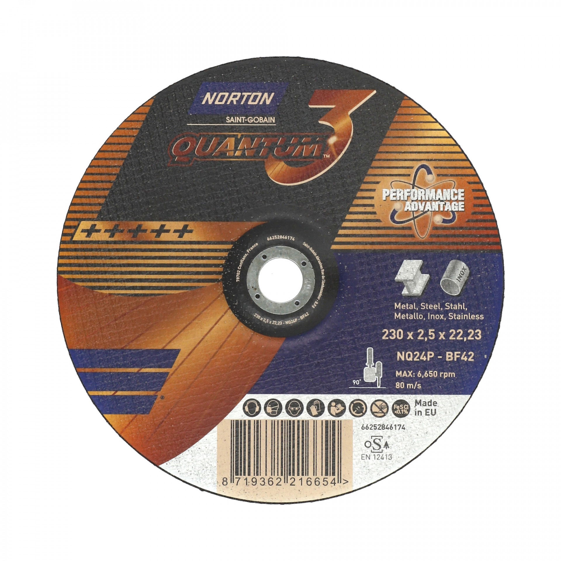 Norton Quantum3 fém-inox vágókorong 230x2,5x22,23mm BF42, 25 db/csomag